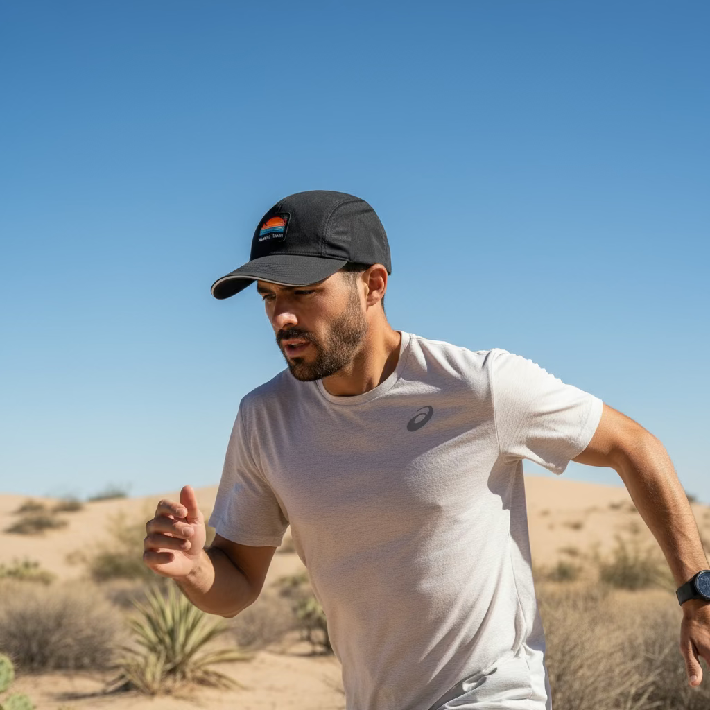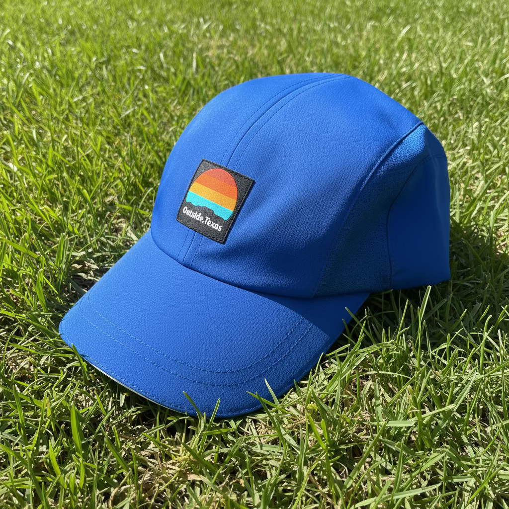 Built for motion, The Trail Stitcher keeps it cool when things heat up. Breathable panels, a curved bill, and a lightweight structure make it ideal for running, hiking, or long days under the Texas sun. The same woven label ties it back to the rest of the series, a detail of texture and craft that reminds you where it came from.
